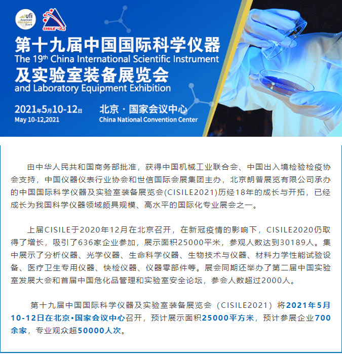 2021年5⽉12⽇,为期3天的第⼗九届中国国际科学仪器及实验室装备展览会 (cisile2021)于北京 ·国家会议中心圆满落下帷幕。 从决定参加展览会开始,到活动前实际布置现场,友诚⽣物全体⼯作⼈员员都都尽心竭力,力图把产品*好的一面展示给参会客户。